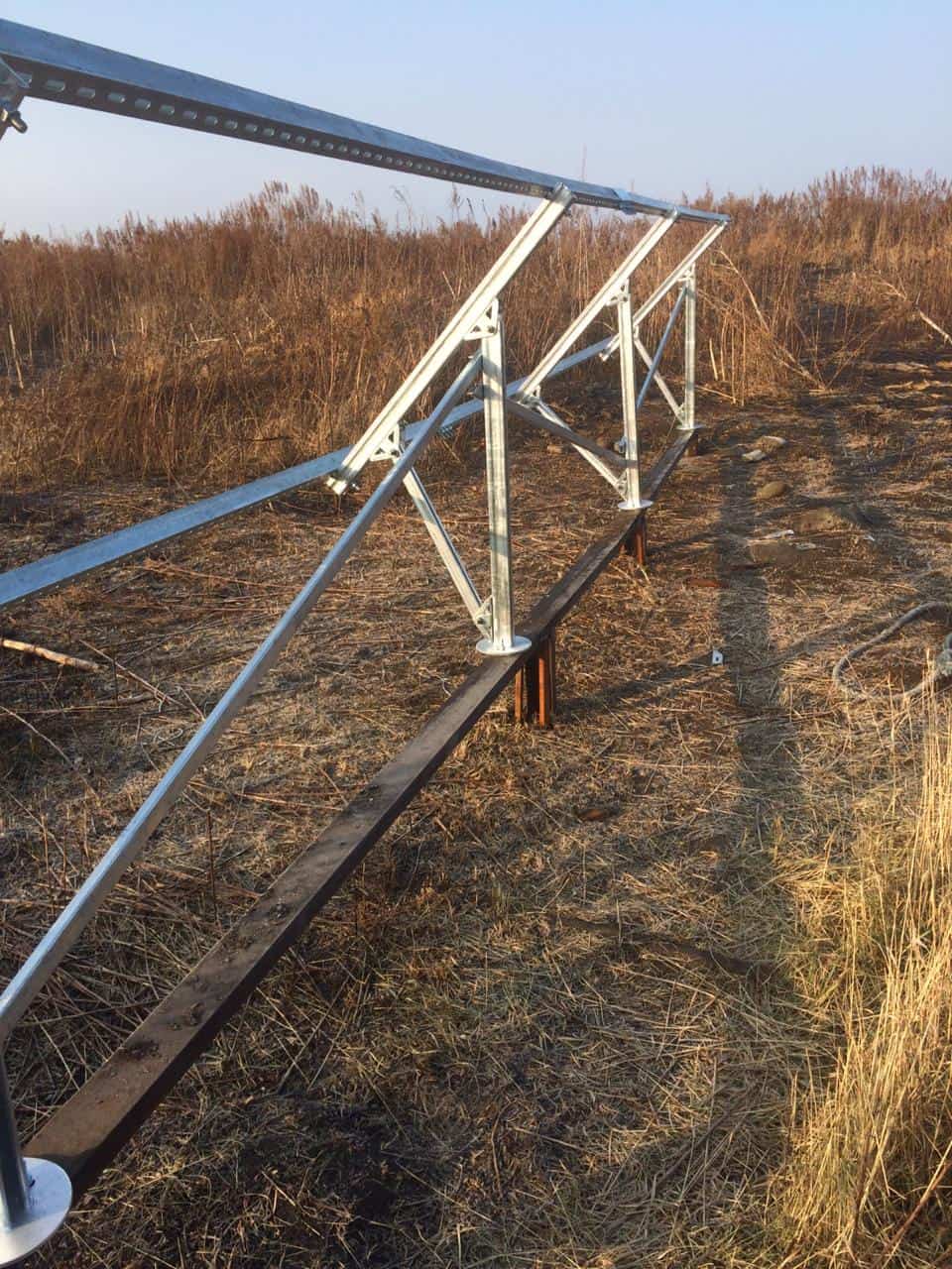 Данный комплект предназначен установки солнечных батарей на земле в один ряд под углом 45 градусов к горизонту (с двумя рядами опорных ног ).